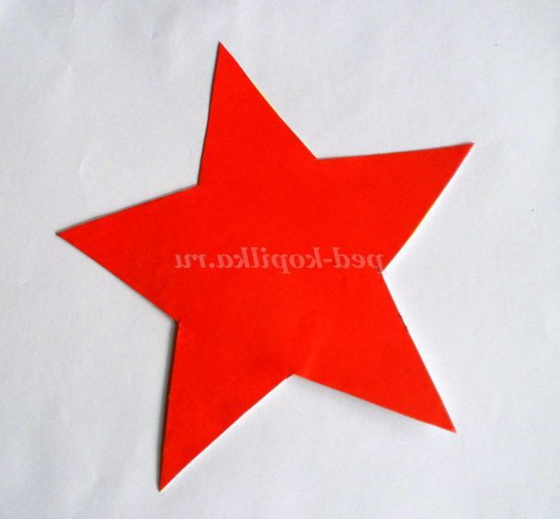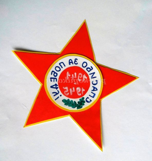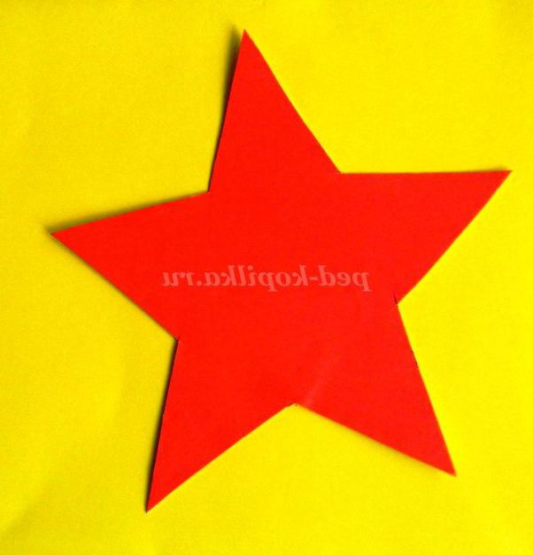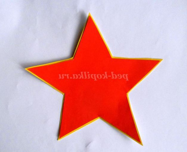 8. Червону зірку наклеїти на папір жовтого кольору і вирізати по жовтому контуру, відступаючи 2-3 мм