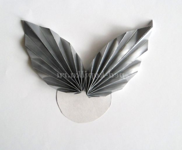 6. На вирізане коло наклеюємо п'ять листочків сріблястих