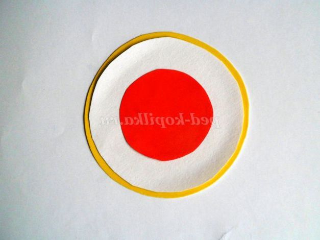 10. Вирізати червоний круг меншого розміру і наклеїти на середину білого кола