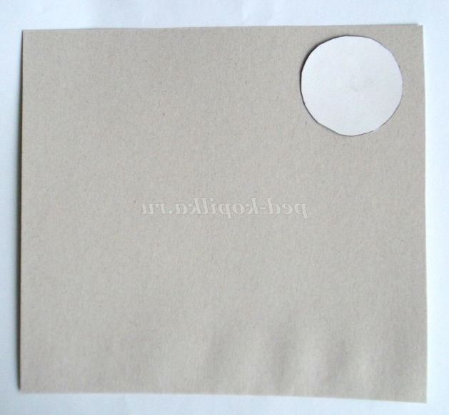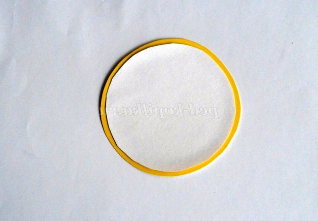 9. За шаблоном вирізати білий коло більшого розміру і наклеїти на жовтий аркуш паперу і вирізати по контуру, залишивши 2-3 мм жовтого кольору
