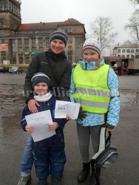 «Здрастуйте, шановний водій! Звертаються до Вас хлопці Медвежьегорской середньої школи №1. Будь ласка, будьте уважними на дорогах, дотримуйтеся правил дорожнього руху, поважайте пішоходів, поступаючись їм дорогу, а ми, в свою чергу будемо поважати Вас.
