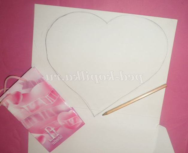 1.На білому картоні намалюйте сердечко, яке буде більше подарункового пакета. Для дітей можна підготувати шаблон.