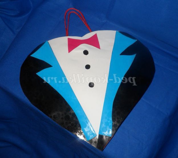 Тата або дідуся теж підготуємо сумочку-валентинку, яка виготовлена за допомогою аплікації з кольорового картону.