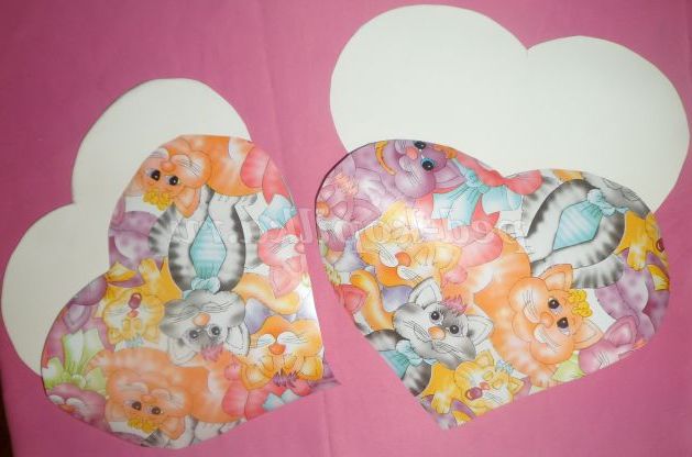 3.На вирізані сердечка наклеюємо яскраву самоклеюче плівку або веселі картинки.