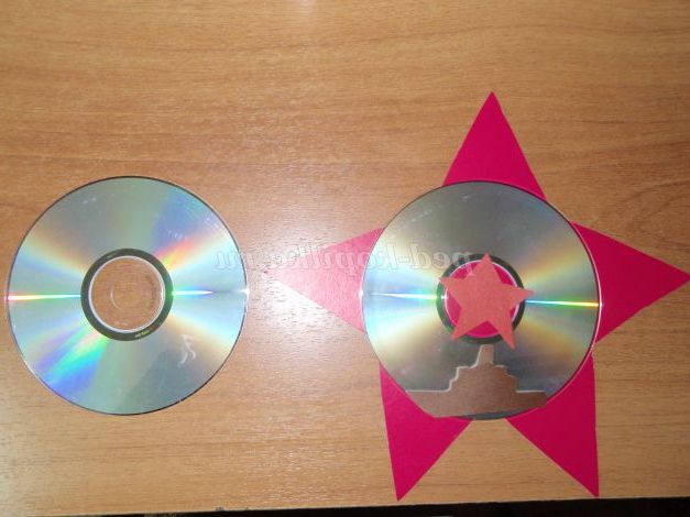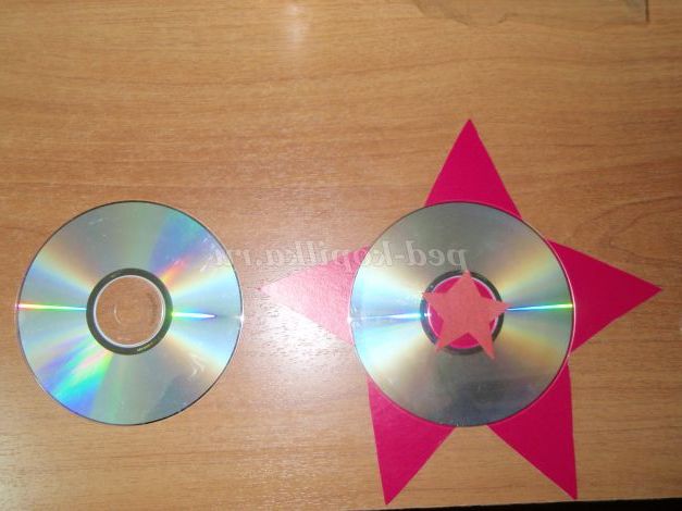 Беремо червону зірку і приклеюємо на неї по центру лазерний диск.