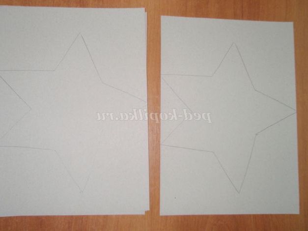 Для початку малюємо простим олівцем на білому аркуші картону п'ятикутну зірку.