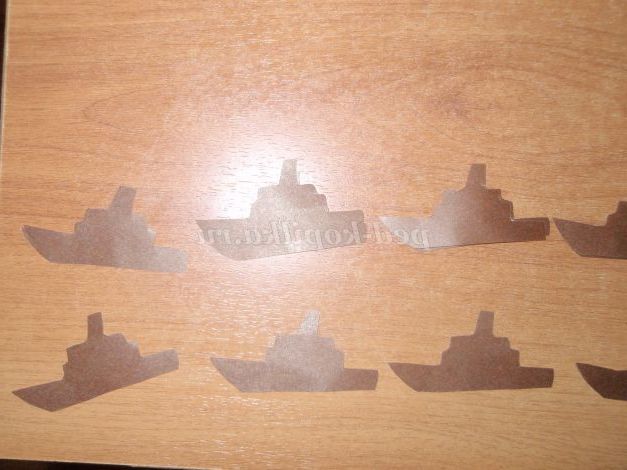 Малюємо на білому картоні силуетні зображення літачків і кораблів , переводимо їх на кольоровий папір і вирізаємо.