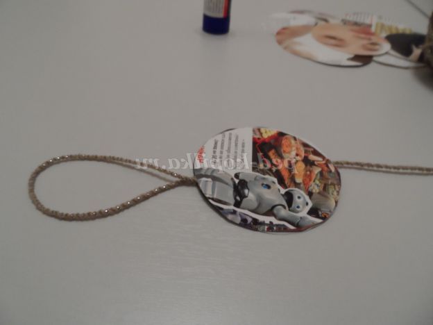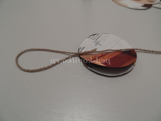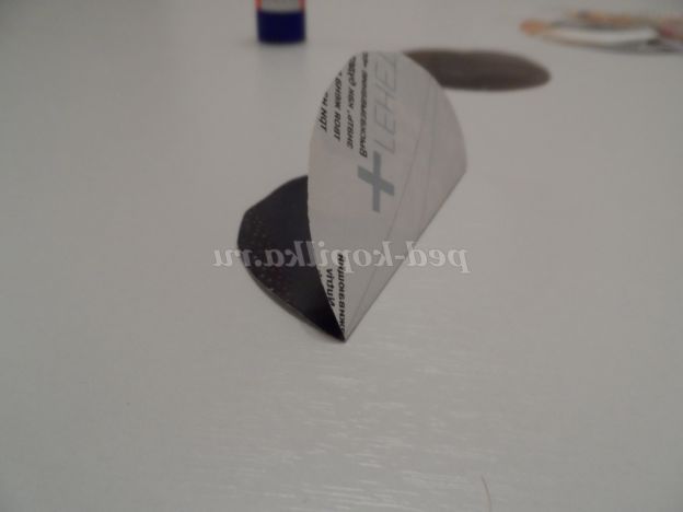 6. Відрізаємо нитку потрібної довжини (залежить від виду виробу),приклеюємо між згинами двох половинок (малюнок 7)