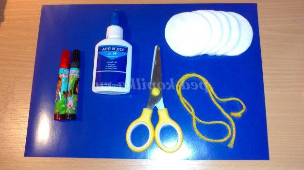 Обладнання: аркуш картону, ватні диски, вовняна нитка.