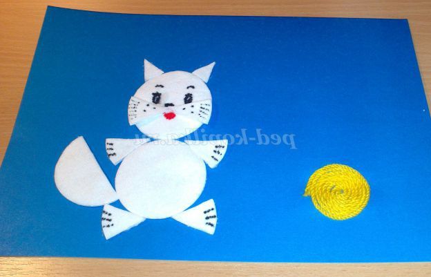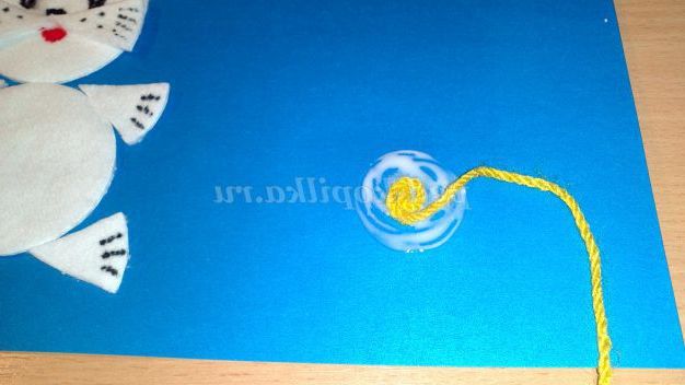 8. Поряд з котиком приклеюємо вовняну нитку, уклавши її по колу.