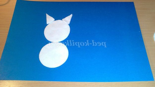 1. Закріплюємо знання дітей про колі. Приклеюємо 2 ватних диска.