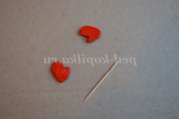 Щоб сніговик не замерз морозної вночі, виріжемо йому пару рукавиць, які закріпимо за допомогою зубочистки.