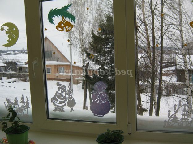 Ось, вітраж наш готовий. Для прикраси і яскравості можна намалювати сніжинки. Все на ваш розсуд.