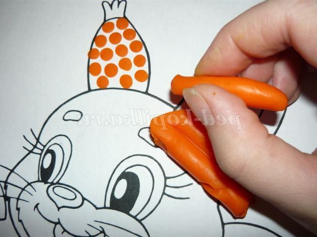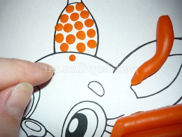 12. Беремо пластилін, відщипуємо маленькі шматочки, скачуємо з них кружечки і приклеюємо на малюнок.