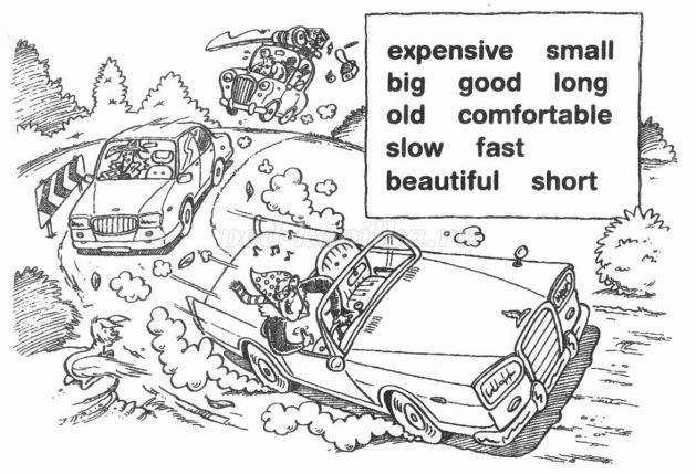 -I offer you to practise using the degrees of comparison more. You have got a picture. Додаток 3 Look at it and compare the three cars. You are to make the sentences using the comparative or the superlative of adjectives listed next to the picture.
