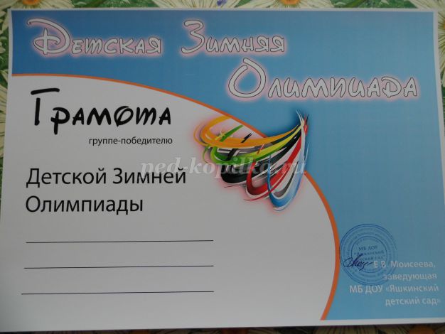 ![]() Зимова Олімпіада в дитячому саду. СценарийСценарий розроблено: Кущовий Оленою Володимирівною, вихователем 1 кваліфікаційної категорії МБ ДНЗ «Яшкинский дитячий садок»