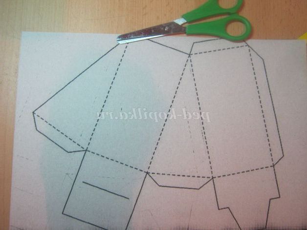 2. Вирізати по зовнішньому контуру,суцільну лінію на клапані прорізати ножицями або канцелярським ножем,пунктирні лінії опрацювати заокругленим кінчиком ножиць по лінійці.