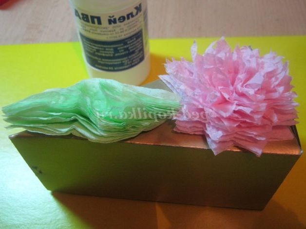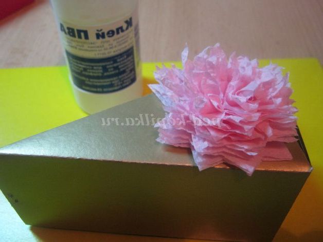 8. Приклеїти на коробочку квітка і лист.