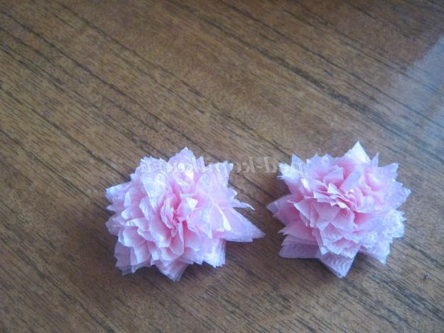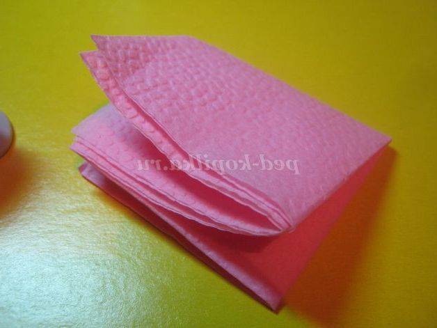 5. Виготовлення квітів і листя. Не расправленную серветку скласти вчетверо і закріпити стерлером.