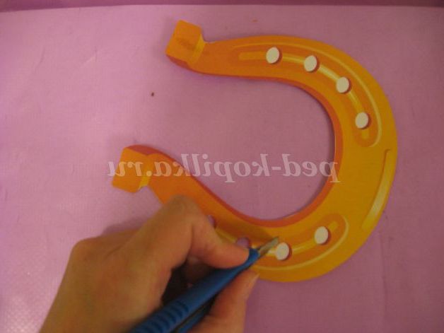 Готуємо підкову з паперу. Я роздрукувала на кольоровому принтері зображення підкови. Вирізала по контуру ножицями, а дрібні деталі-канцелярським ножем