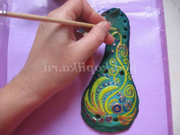 Прикрашаємо заготівлю будь-якими візерунками. При розфарбовуванні вироби не лийте багато води. По можливості працюйте швидко і акуратно, адже навіть обпечене тісто не любить вогкість