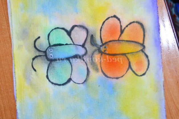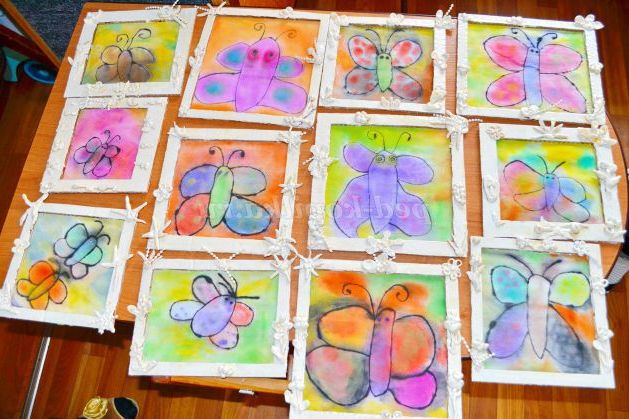 метелика готовий. Приступаємо до виготовлення рамок. На заздалегідь вирізаному картоні під рамочку діти з пластиліну ліплять різні квіти, дерева, кульки, прикріплюючи їх на рамку , додають непридатний матеріал, створюючи таким чином композицію.
