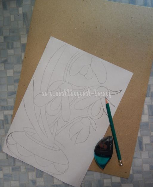 2. На картоні малюємо не складний малюнок, з великими деталями. Визначаємо, якими кольорами будемо виконувати ті чи інші елементи (для зручності на малюнку можна вказати кольори, щоб не заплутатися і не забути).