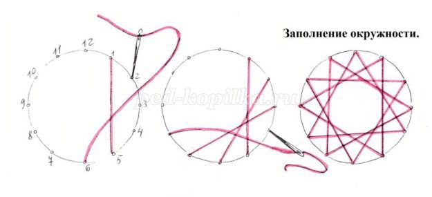 Нитки. Вони можуть бути котушкові або муліне, але найкраще нитки «Ірис» або «Гарус» (рівні, блискучі і не дуже тонкі). Чим більше кольорів і відтінків ниток, тим багатшою буде композиція;