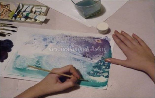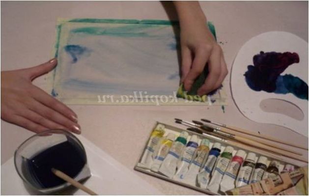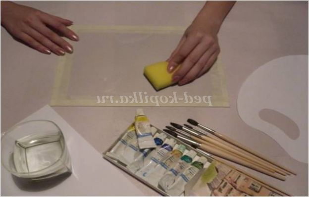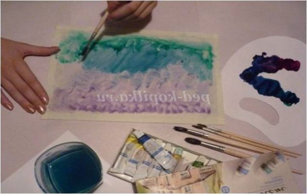 5. Вологою губкою протріть скло, дайте висохнути, тим самим приготувавши поверхню до наступного варіанту монотипії.