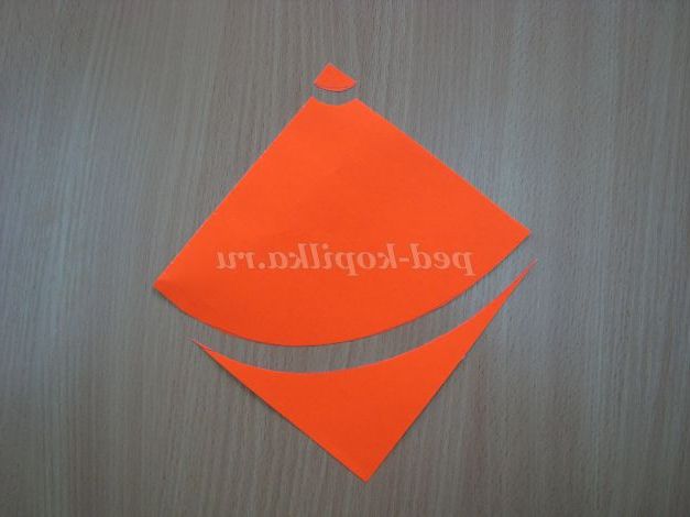 6.Закруглить (відрізати ножицями) верхній кут і нижній кут квадрати з кольорового паперу.