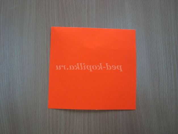 Беремо аркуш яскравого кольорового паперу розміром 10/10 сантиметрів, вирізаємо квадрат.