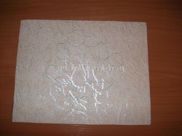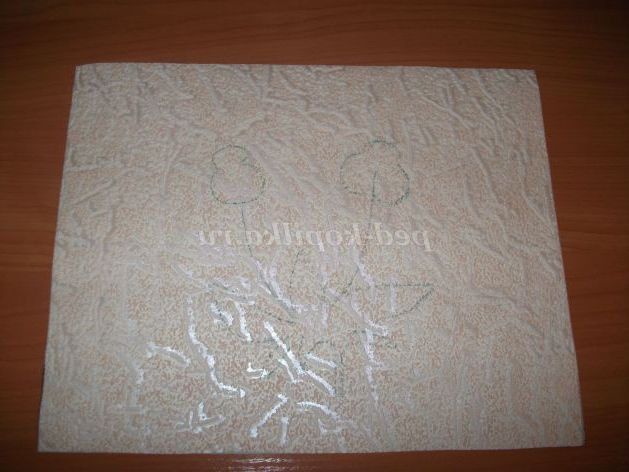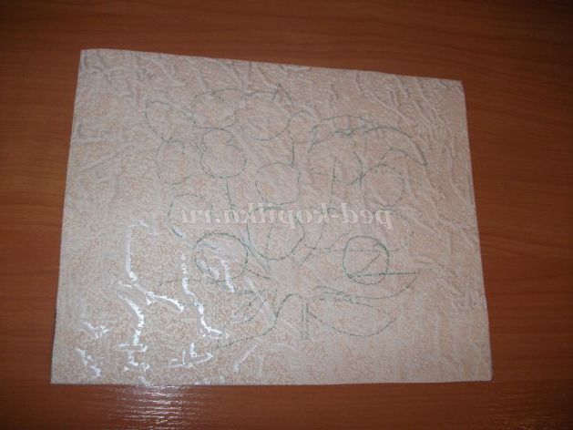 Для основи роботи використовуємо шматок рифлених шпалер, він краще передає характер сюжету композиції, природного матеріалу.