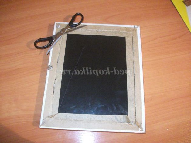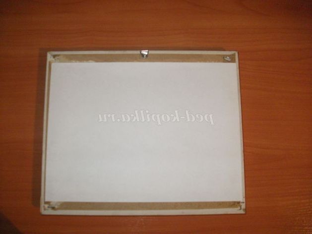 З виворітного боку картини, закріплюємо притискними вусиками і приклеюємо білий аркуш картону, для естетичного вигляду