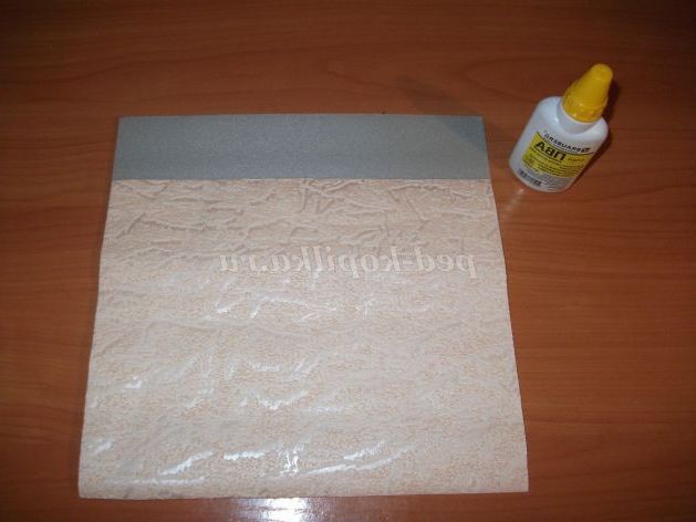 Наклеюємо на готову картонну основу шматок шпалер клеєм ПВА