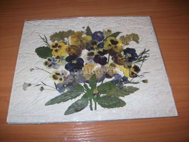 Пропоную Вам виготовити картину із зображенням весняного букета в техніці аплікація із засушених квітів і листя - флористика