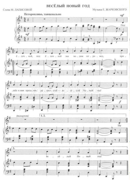 Діти, мами, інші гості встають в хоровод. Виконується пісня «Веселий новий рік», музика Е. Жарковского (додаток № 12). Після хороводу діти сідають на стільчики. Дід Мороз, Снігуронька і конячка дарують батькам невеликі подарунки.