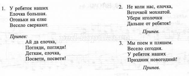Діти стають у хоровод. Виконується пісня «Ялинка», музика М. Бахутовой (додаток № 2). Після хороводу діти сідають на стільчики.