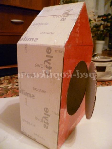Тепер потрібно все обклеїти красивою папером. Я обклеїла коричневою металізованої гофр. Папером, ось що вийшло