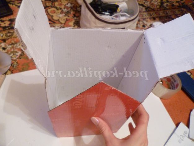 Перш ніж її склеїти, потрібно обклеїти внутрішню частину, так як дверцята буде відкриватися