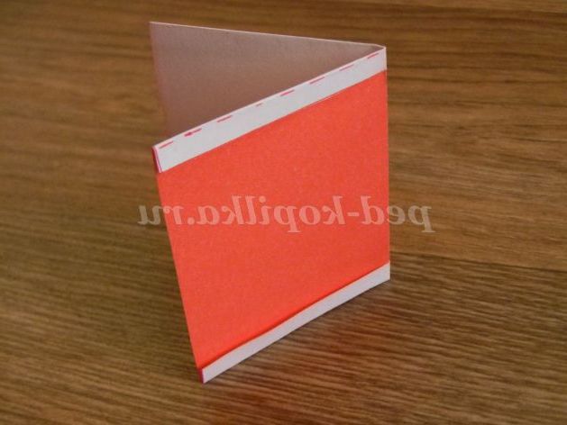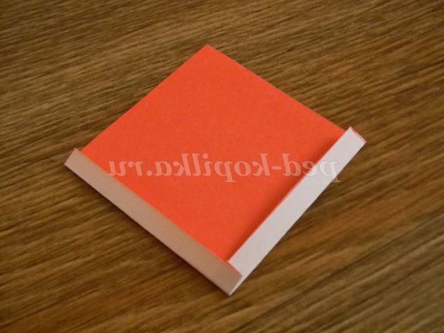 8. По двом поруч лежачим бічних сторонах, відміряємо по 0, 5 мм, і загинаємо білою стороною, на червону.