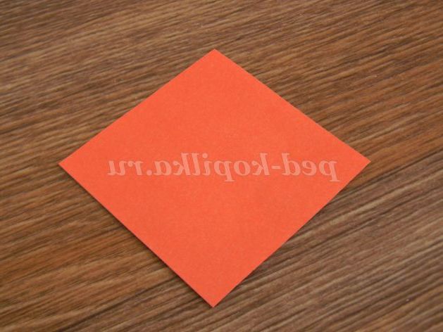 9. Перегорнемо заготівлю, розташувавши її перед собою у формі ромба. Далі загинаємо одну сторону до середини, аналогічно другу. Вийшов ковпачок.