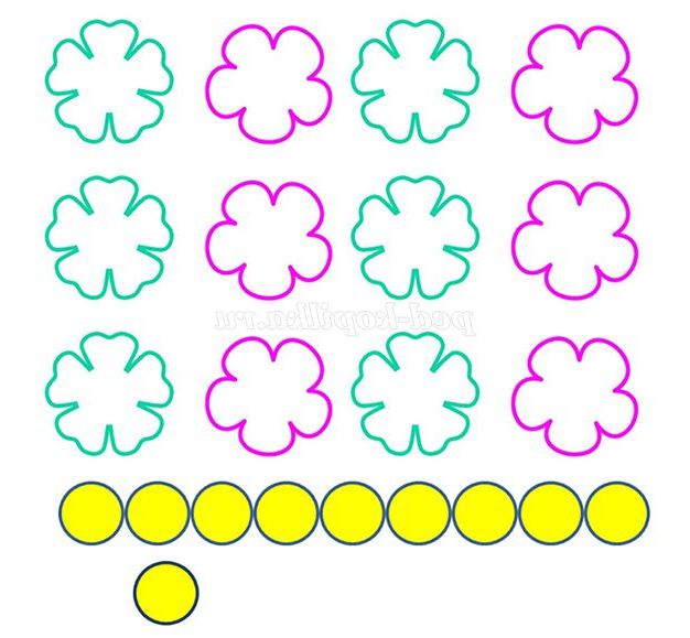 Заздалегідь приготувати квіточки і кружечки (імітація бутонів) різного кольору, діаметром 1-1,3 см. по 10 штук на букетик.