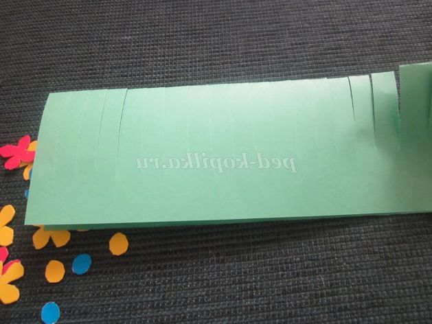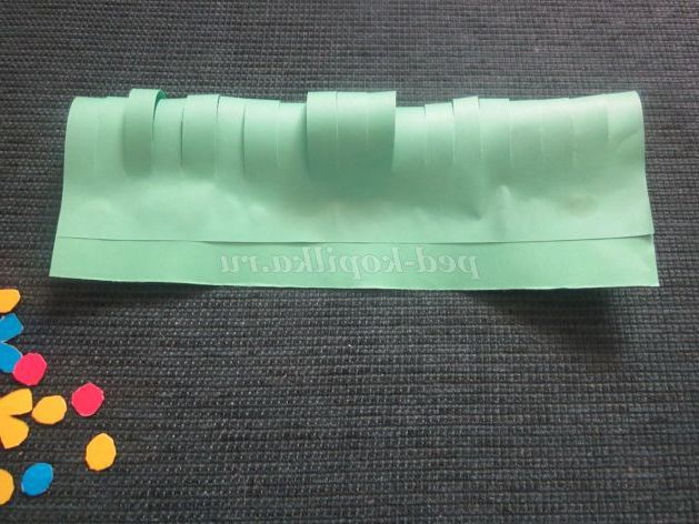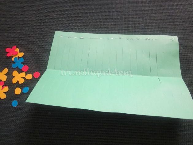 Крок 2. На складеному навпіл аркуші справах рівномірні надрізи. Проміжок між надрізами приблизно 4 мм.
