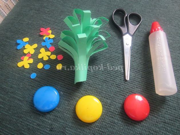 Крок 6. Одержаний кущик прикрашаємо раніше приготованими квіточками, кружечками.