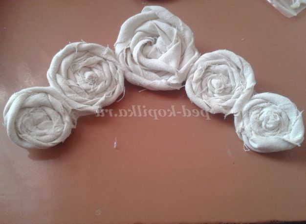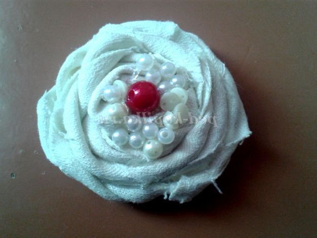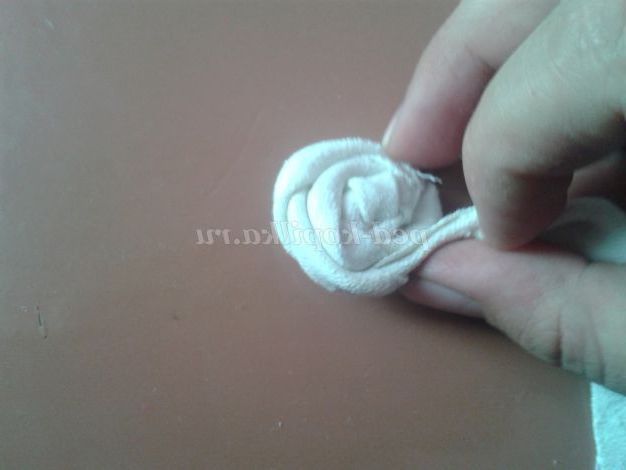 3.Начинаем скручувати смугу навколо вузла, іноді перегинаючи тканина імітуючи пелюстки.