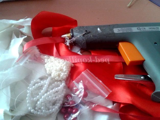 7.Приклеить її до бутона, прикрасити бантами з червоної стрічки.