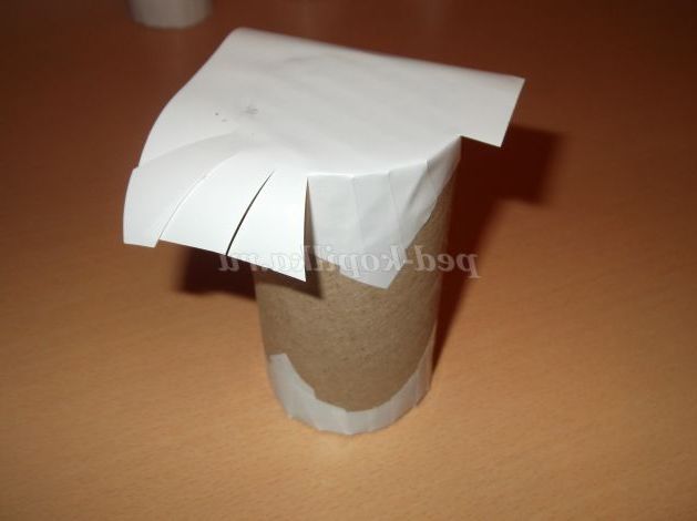 6. По краях наклеєного квадрата робимо надрізи, щоб більш рівномірно і акуратно обклеїти циліндр.