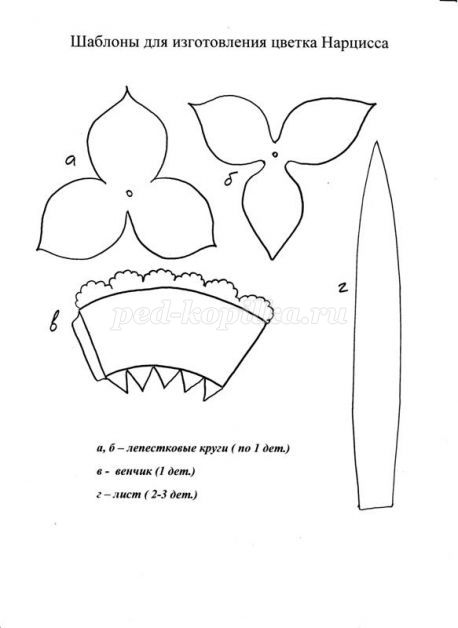 Для виготовлення квітки Нарцис в техніці гильоширования ми будемо використовувати шаблони деталей для виготовлення квітів з тканини.
