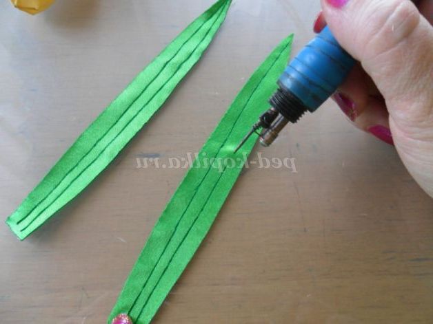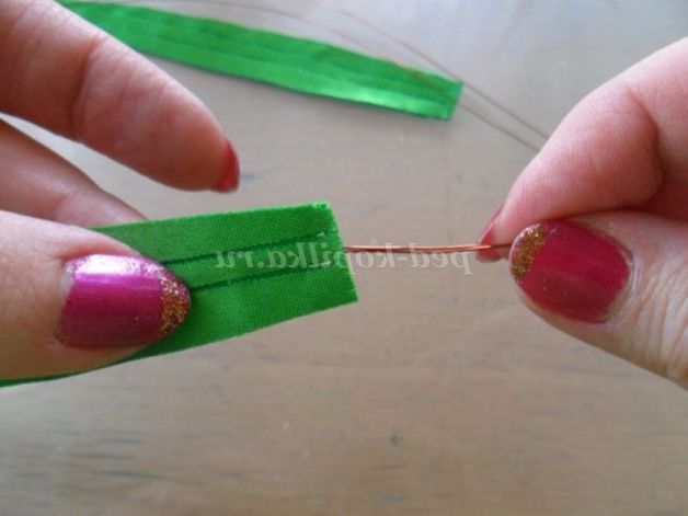Нижче, на відстані 3-4см кріпимо 2 лист, і продовжуємо замотувати стебло до кінця. Внизу фіксуємо клеєм ПВА.