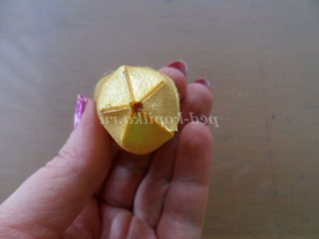 Потім, насадивши віночок квітки на зубочистку або металевий стрижень, споюємо пелюстки і віночок.